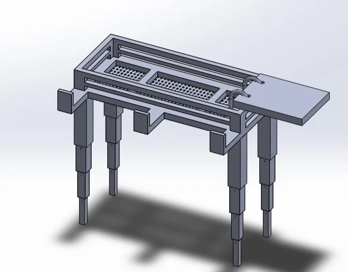 This project is for TheExperts during my spring 2023 internship as a Design Engineer. The Car-go is a hitch attachment aimed at people who like to camp or tailgate often. This attachment contains a table that swings out to hold a grill or additional things. The grate is to hold a cooler or other larger objects, while the hooks are dimensioned specifically for a canopy to be strapped on. The legs can either be folded up or extended to be able to undo the hitch and leave the product as a stand-alone object. My role in this project was to be the main designer. I started with product and patent research, and then moved on to the drawings and Solidworks design.